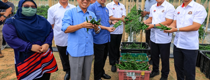 Terdahulu, YB Dato’ Zahari Sarip, Pengerusi Jawatankuasa Pertanian, Industri Asas Tani dan Kemajuan Luar Bandar Negeri Johor menyempurnakan Majlis Pelancaran Ladang Usaha Agritech – Ladang Sayuran Berbuah Secara Fertigasi Menggunakan Inovasi Polibeg Bantal di Taman Impian Emas, Skudai, Johor Bahru.