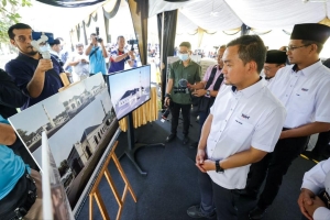 Menteri Besar Johor, Datuk Onn Hafiz Ghazi melihat cadangan reka bentuk Masjid An-Nur Bandar Tiram | Sumber Facebook Onn Hafiz Ghazi.