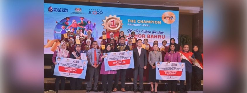 Pertandingan ‘Choral Speaking’ anjuran Yayasan Johor Corporation (JCorp) dengan kerjasama Jabatan Pendidikan Negeri Johor yang telah berlangsung pada hujung September lalu. | Foto ihsan Yayasan JCorp